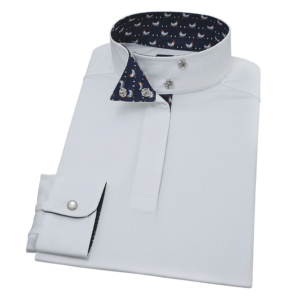 We love this shirt because of the classic white styling, coupled with cute fashion graphics on the inner collar & sleeves.  Show up, show out, & stand out at the show in this stylish shirt from Essex Classics. Â