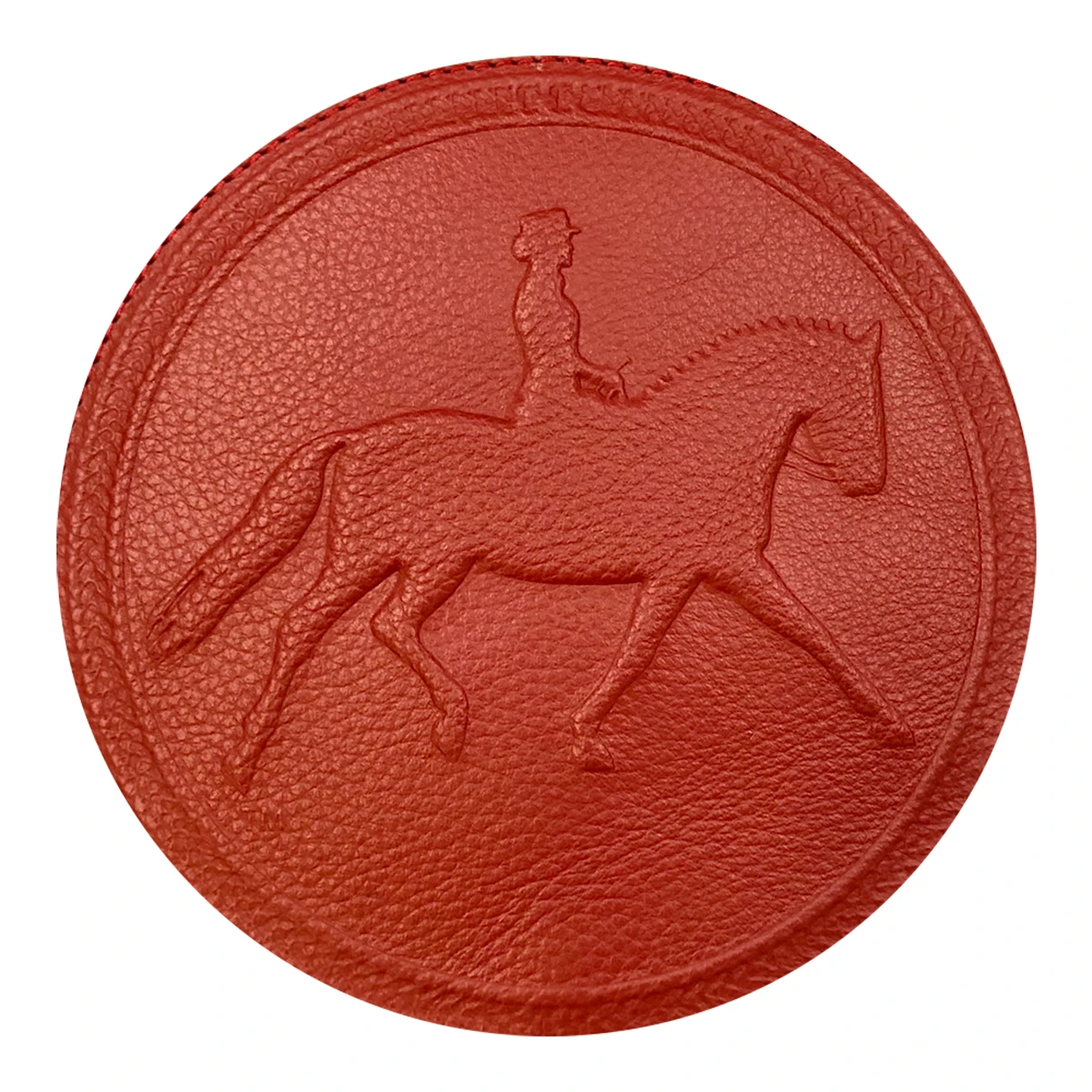 This purse also features a retracting gold full zipper close that provides complete security when zipped, but folds away for easy access while unzipped. Available in chestnut, black or red featuring hunter jumper, dressage, fox hunting, signature, and polo embossing options.